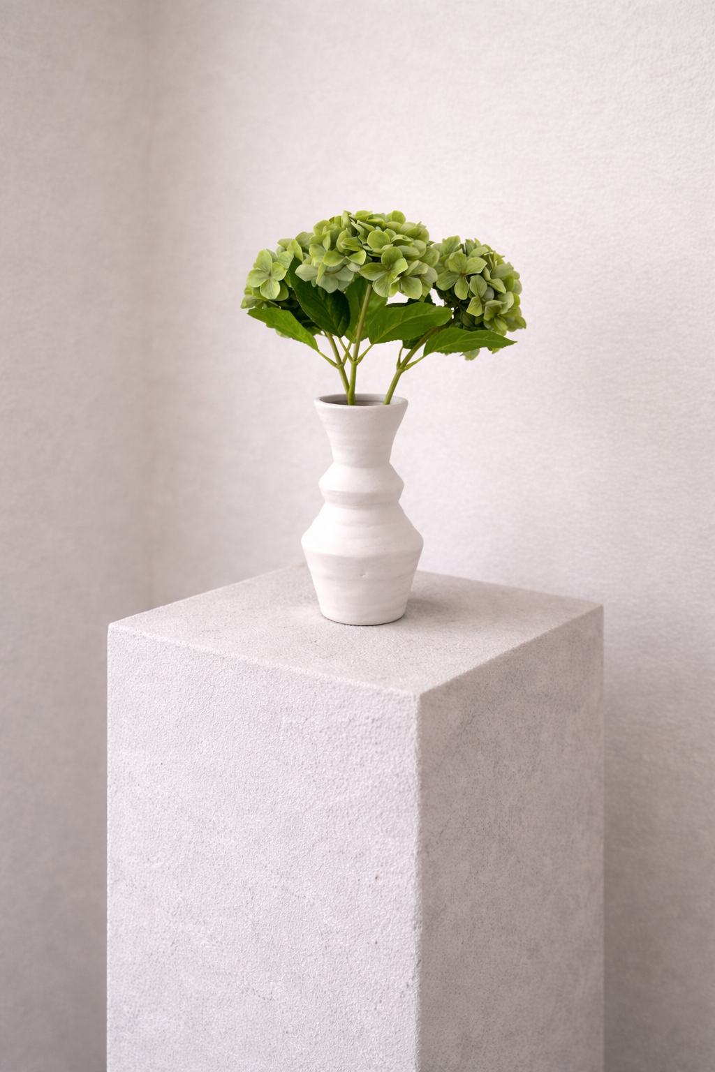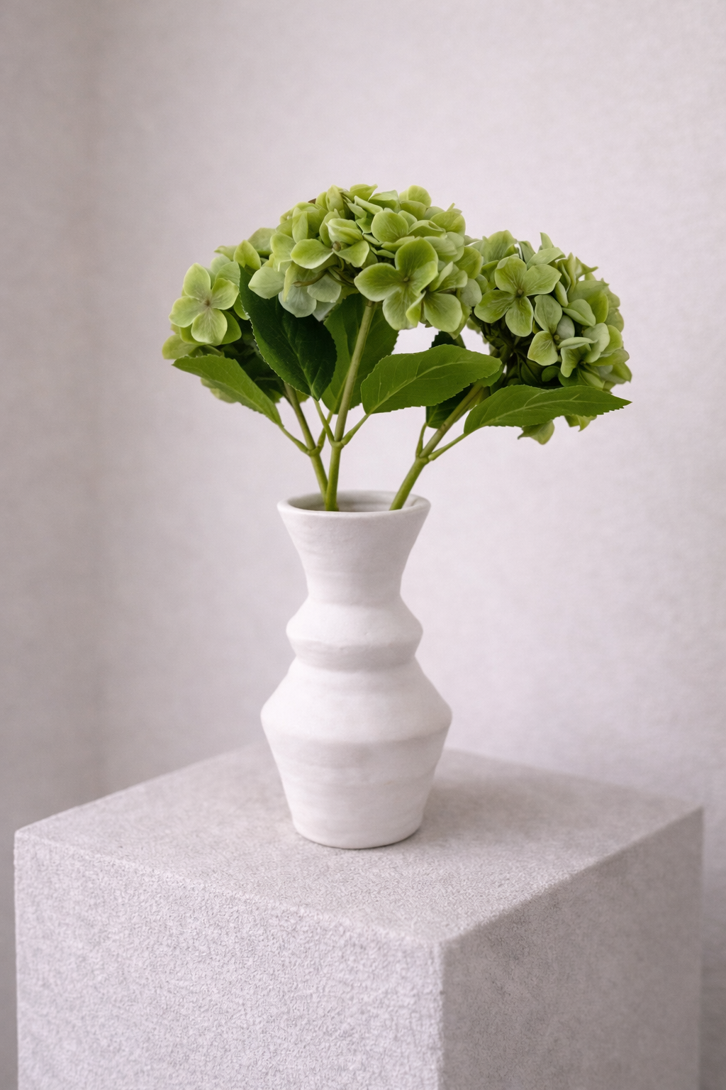 Diese kunstvoll gearbeiteten Hortensien bringen frische Ruhe und stilvolle Leichtigkeit in dein Zuhause. Die zartgrüne Farbgebung wirkt beruhigend und modern zugleich – ein echtes Statement ohne aufdringlich zu sein.